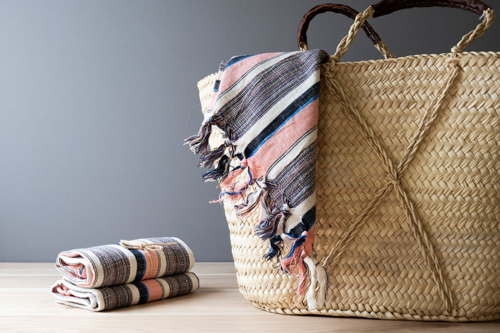 Pestemal (pesh-te-mahl) n. ?The traditional flat-woven towel used in the legendary Turkish bath. Famous for its absorbency and softness, it is perfectly suited for everyday use. It is handwoven of a Turkish linen/cotton blend with hand-tied fringe. This hand towel was made with care by a skilled family of weavers in Turkey.?