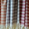 Pestemal?(pesh-te-mahl) n. The traditional flat-woven towel used in the legendary Turkish bath. Famous for its absorbency and softness, it is perfectly suited for everyday use. It is hand-loomed of 100% Turkish cotton with hand-tied fringe.?
