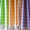 Pestemal?(pesh-te-mahl) n. The traditional flat-woven towel used in the legendary Turkish bath. Famous for its absorbency and softness, it is perfectly suited for everyday use. It is hand-loomed of 100% Turkish cotton with hand-tied fringe.?